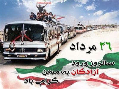 ۲۶ مردادماه سالروز بازگشت غرورآفرين آزادگان سرافراز و اسوه‌هاي صبر و استقامت به ميهن اسلامي است، آزادگان با ايثار، فداکاري، شجاعت و شهامت در دوران اسارت شديدترين شکنجه‌هاي دشمن بعثي را تحمل کردند، اما حاضر نشدند براي لحظه‌اي به آرمان‌ها و ارزش‌هاي امام راحل و انقلاب اسلامي پشت کنند.
