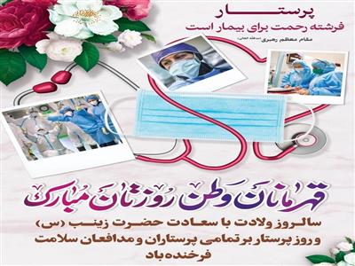 اينجانب ضمن تبريک ولادت باسعادت عقيله بني‌هاشم، حضرت زينب (س) و روز پرستار و گراميداشت ياد و خاطره شهداي مدافع سلامت، اين روز را به تمام فعالان و تلاشگران اين عرصه به‌ويژه پرستاران گرانقدر چهارمحال و بختياري تبريک و تهنيت عرض مي‌نمايم و از زحمات و تلاش‌هاي ارزنده اين قشر شريف تشکر و قدرداني نموده و توفيق روزافزون مقام و منزلت همه پرستاران زحمتکش را از درگاه ايزد منان مسئلت دارم.