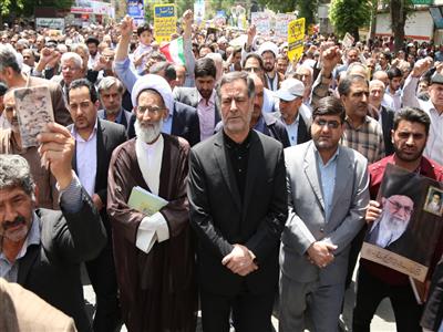مردم روزه دار در آخرين جمعه ماه مبارک رمضان ثابت کردند که حامي واقعي آرمان هاي نظام مقدس جمهوري اسلامي، امام خميني (رحمه الله عليه) و منويات مقام معظم رهبري (مدظله العالي) هستند و ملت مظلوم و بي دفاع فسطين را هرگز تنها نخواهند گذاشت.